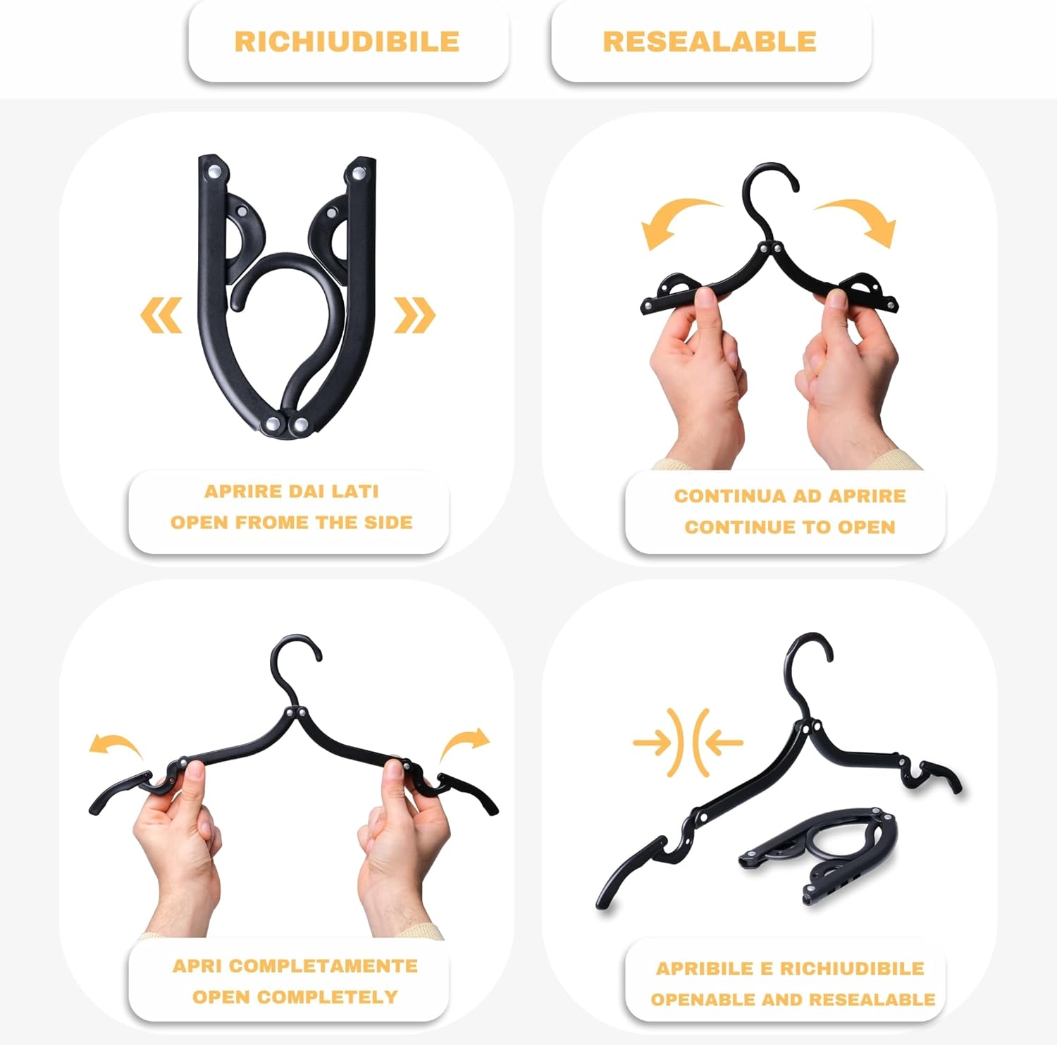 Viaggio spesso per lavoro, e talvolta mi è capitato di andare in alberghi dove le grucce disponibili erano quelle di metallo con le quali consegnano le camice in lavanderia (no comment). Portare le grucce con me, nel piccolo trolley « bagaglio a mano » in aereo, era decisamente non fattibile.Ho quindi deciso di provare le grucce in argomento, non ne conoscevo neanche l’esistenza (mi sono state consigliate da un collega) ma è stata una piacevolissima sorpresa. Nei bagagli una gruccia occupa lo stesso spazio di una cravatta piegata, ed una volta aperta è una gruccia a tutti gli effetti, ovviamente di quelle senza la forma rotonda per le spalle, ma assolutamente funzionali e resistenti, ci appendo regolarmente giacche e giubbotti.Opinione più che positiva.