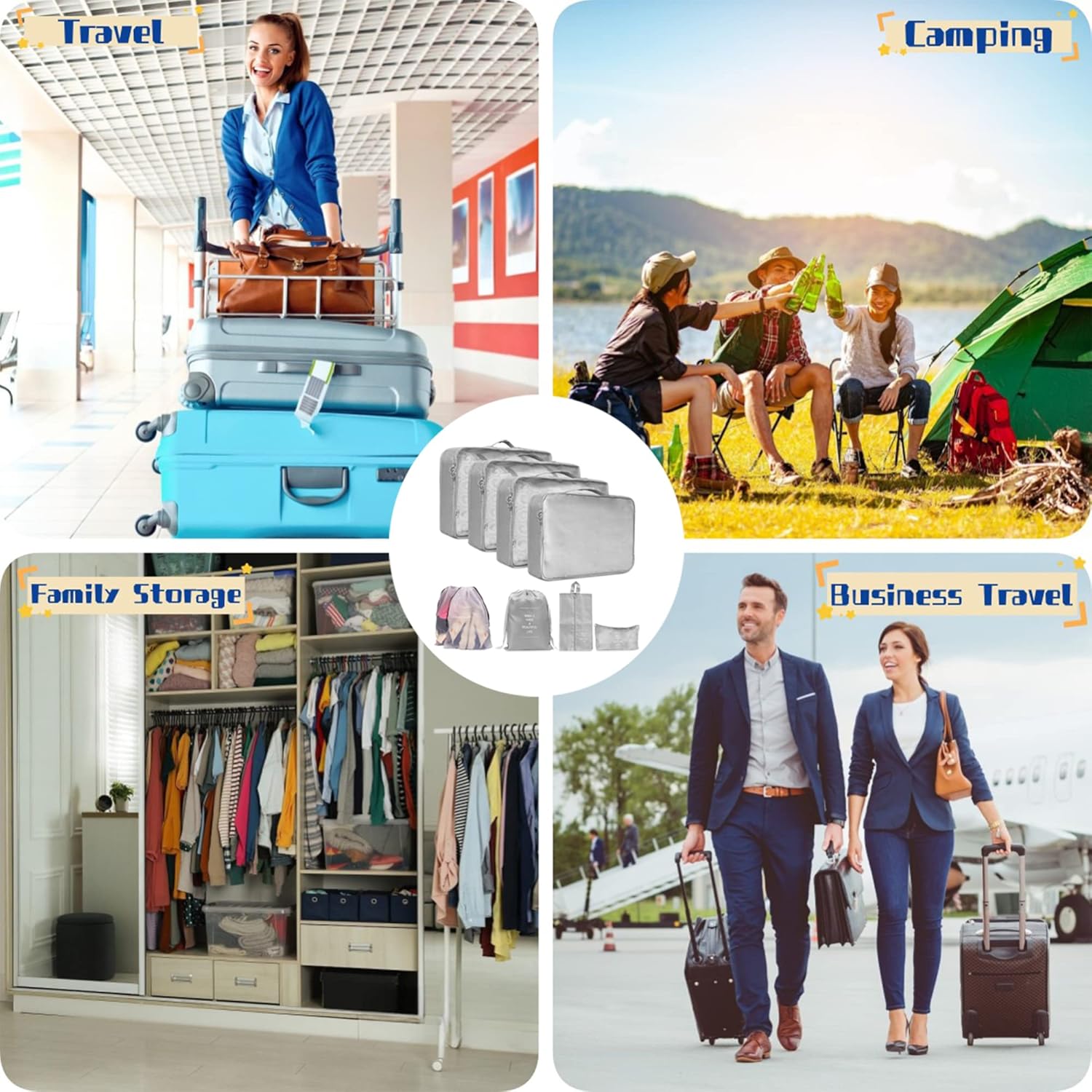 Diese Organizer sind unverzichtbar. In den größten passen die gefalteten Pullover exakt hinein. Mit Band können sie komprimiert werden. In den übrigen Behältern können Unterwäsche, Socken, Schuhe, Badesachen getrennt, geordnet und bei Bedarf auslaufsicher (zB Sonnencreme und Duschgel) verpackt werden. Dann Alles wie Bausteine in den Koffer, fertig! Im Hotel können die Behälter entnommen und in die Schränke verteilt werden. Keine Unordnung, einfache Auswahl beim Anziehen, weil alle Teile mit einem Griff aus dem Schrank sind. Wenn sich mehrere Reiseabschnitte verbinden, kann ganz einfach wieder ein- und ausgepackt werden.Einzig mögliche Verbesserung: Die Zusammenstellung der Behälter ist nicht vorgegeben, sondern kann frei gewählt werden