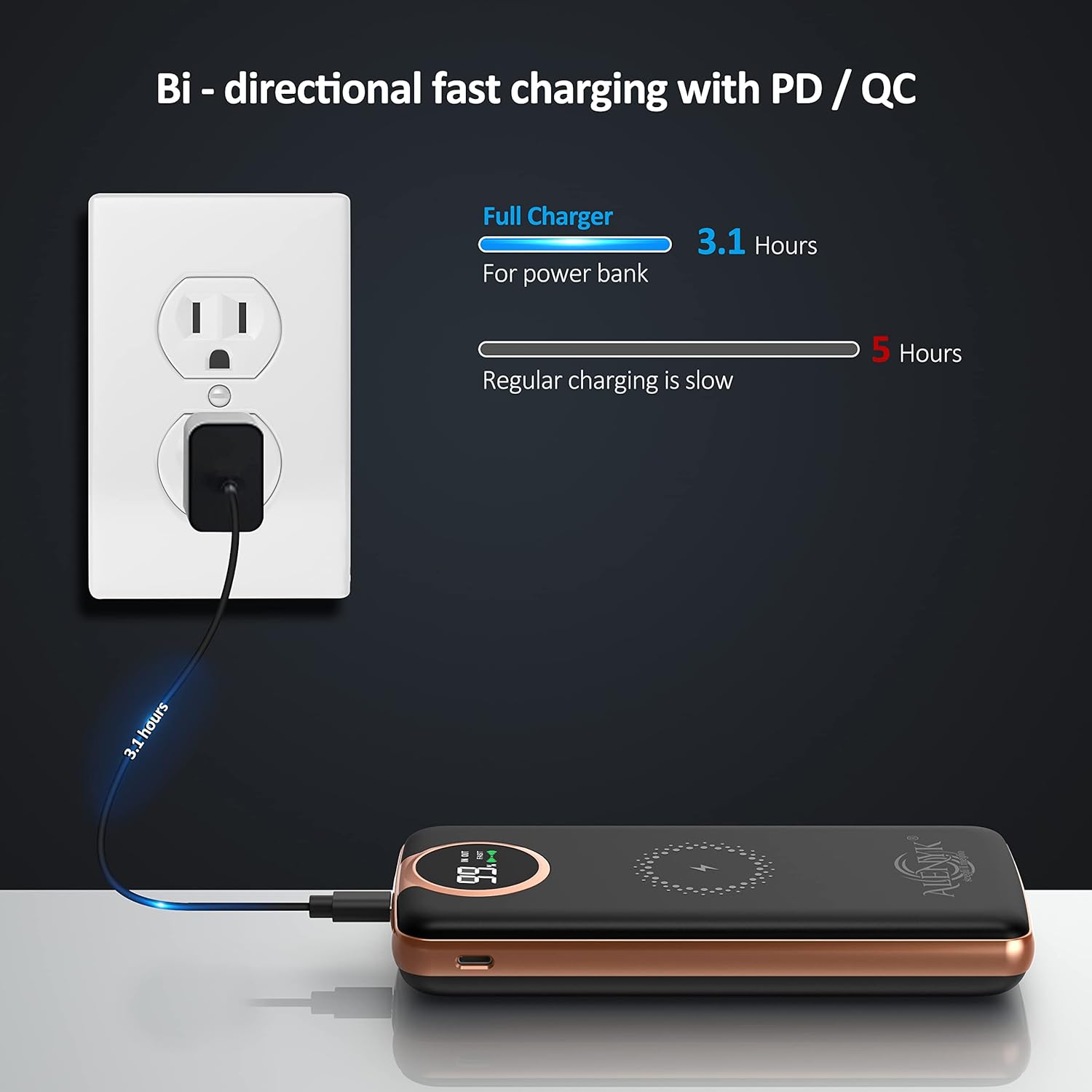 Power Bank Portable Sûr: CE Banque de puissance USB C portable innovante adopté des technologies de Contrôle IC et des circuits de protection Multiples pour éviter la supplément, les courts-circuits, les températures élevés, etc.