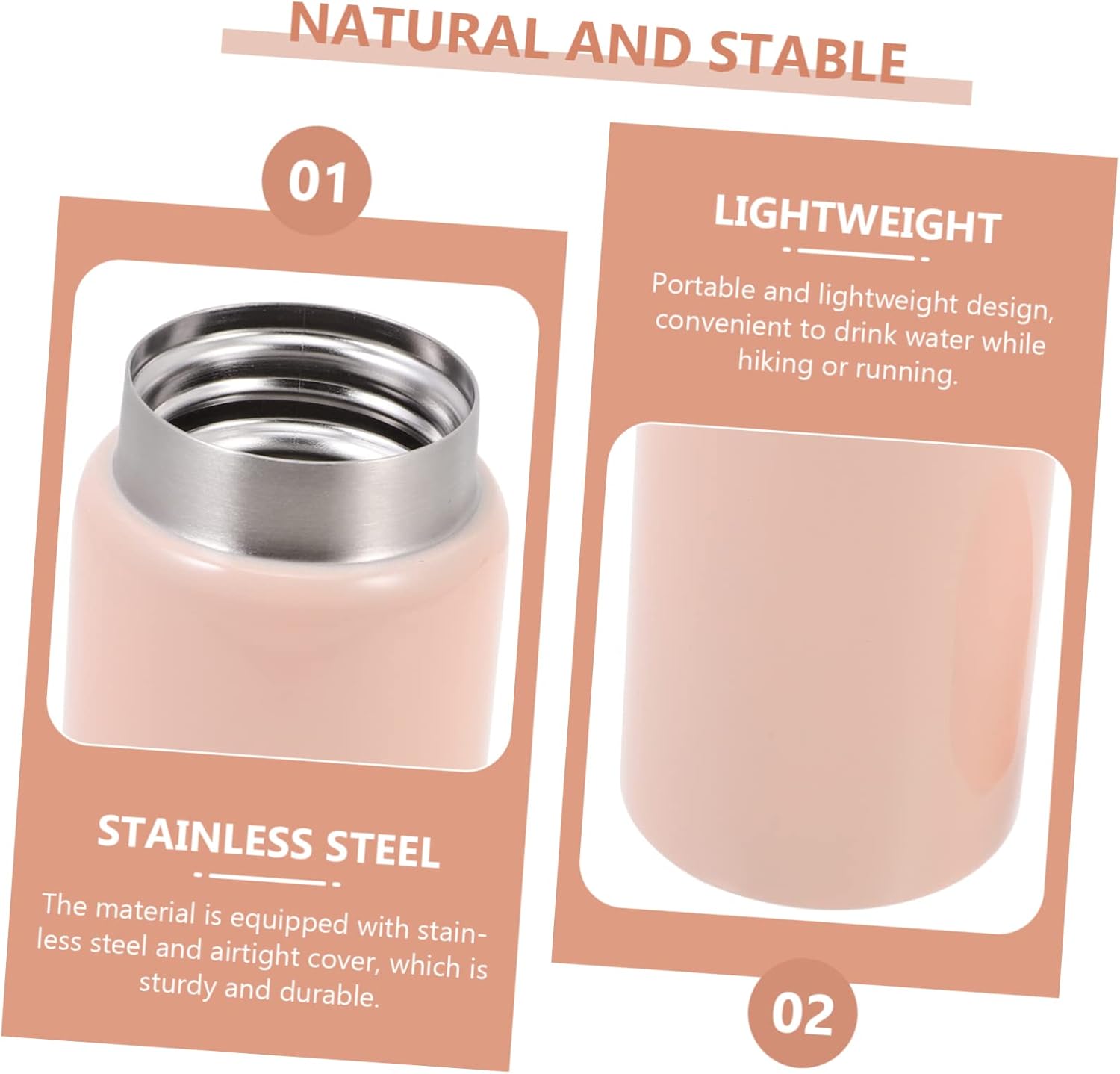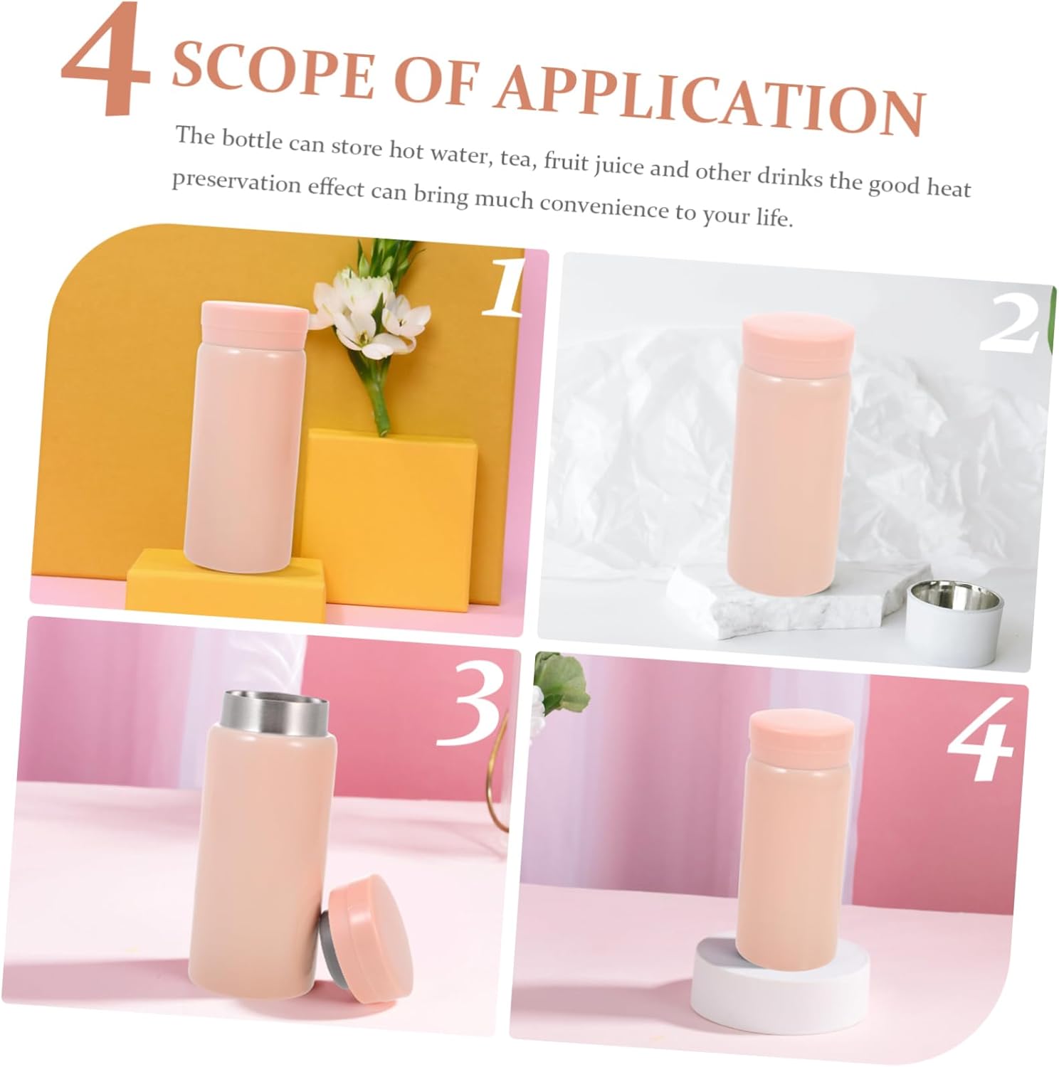 – La Bouteille Peut Stocker de l’Eau Chaude, du Thé, des jus de fruits et des Autres Boissons. Tasse à vide en acier inoxydable.