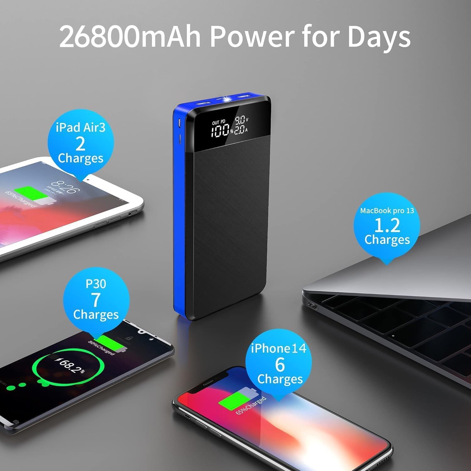 Distance Trave 25W Fonction de Charge Rapide Sûre le Chargeur Portable, Avec Fonction de Charge Rapide PD25W, Peut Fournir Jusqu’à 18W de Charge Optimisée pour vote SORTIE USB + 1 USB C, PEUT Charger 3 Appareils en Même Temps, obtenir une entrée et unie sortie plus rapide. Chargez le Chargeur Portable Pour Répondre à Tous Vos Besoins de Charge. Écran a conduit et lumière conduit. L’écran a conduit peut non seulement Montrer s’il est Sous le Protocole de Charge Rapide Pd, Mais Vous Permet également de Connaiute L’État de charge de l’appareil et d’Afficher sa PUISSANCE. La Lampe de Poche LED Bank Power Bank Peut Être utilisée pour L’éclairage et une utilisation d’urgence