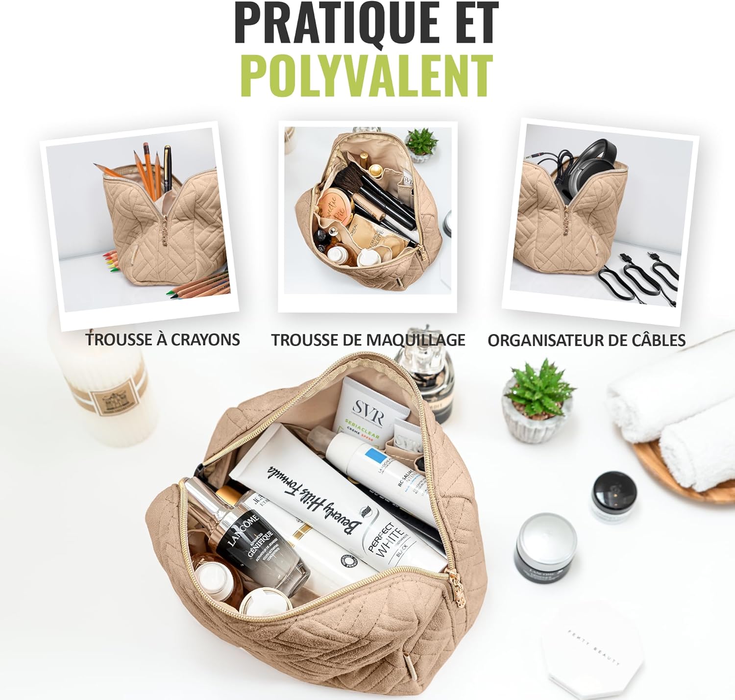 Nous Avons Créé Cette Vanity Soup Grande Avec un Soin Supplémentaire verse Offrir l’Eprérienance la Plus Organisée. Gardez vos Produits de Beauté et vos Essentiells dans le Grand Sac portable, et il vous enlèvera tous vos soucis.