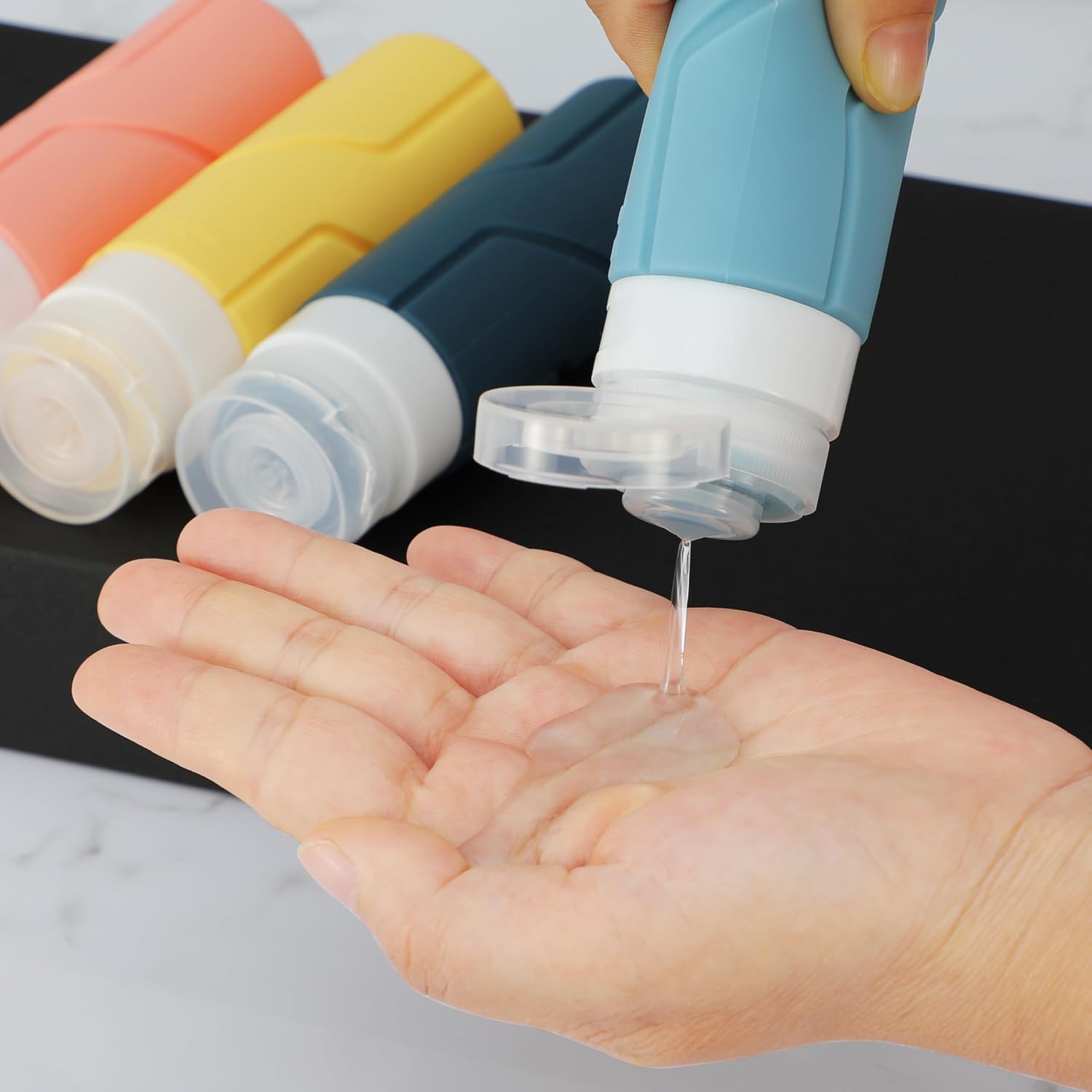 Bouteille de Voyage en Silicone Étanche: Design Étanche à 3 canapés empêchant les Futes de Liquide ou les déversements, et offre une protection à vos Bagages et vêts. Le Contenu de la Bouteille est l’également facile à presser et la Quantitte Qu’Elle peut Contenir est suffisante, Parfaite pour un unevade de 1 à 2 semines.