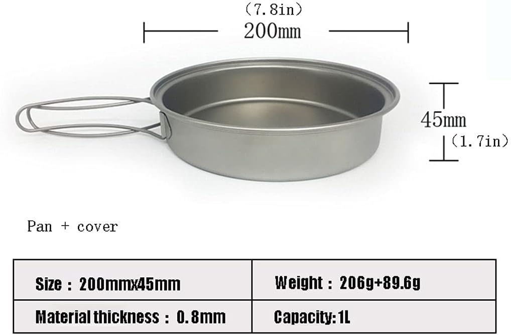 CETTE CUISINE D’EXTÉRIEUR COMPACTE ET PORTABLE EST PARFAITE POUR LE CAMPING, LA RANDONNÉ, LES PIQUES-NIQUES, Les Aventures en Plein Air et d’Autres Activités de Plein Air. Les Poignees peuvent Être Pliées. Le Titane Pur est un Métal Biologique, et il n’y a pas de precipitation métallique nocive à la température. Rangement Simple, compact et facile à transporter, poignère pliable, facile à utiliser, pratique de télévision. Fabrication en titane pur, sain et non toxique.
