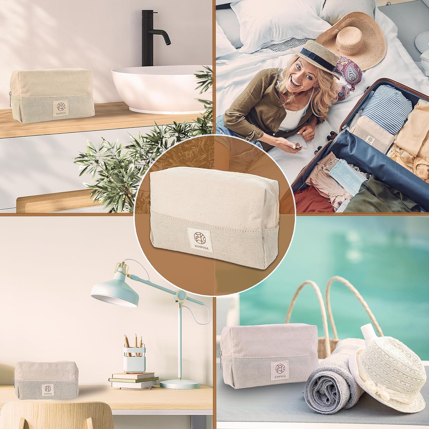 KIMPHIA Redéfinit L’ACCESSOREIRE DE VOYAGE EN ALLIANT Esthétique Raffinée et Fonctionnalité avec un Dévouement Profond à l’Écologie. CETTE BEATE est le fruit d’uni conscience, fabrique en coton et jute de première qualité, assurant non seullement une longue tenue, maisSi un style distinct et minimalist. Parfait pour les voyages Souciux de l’Environnement, Notre-organisateur de maquillage est la synthèse idéale entre confort, Sécuré et beauté.