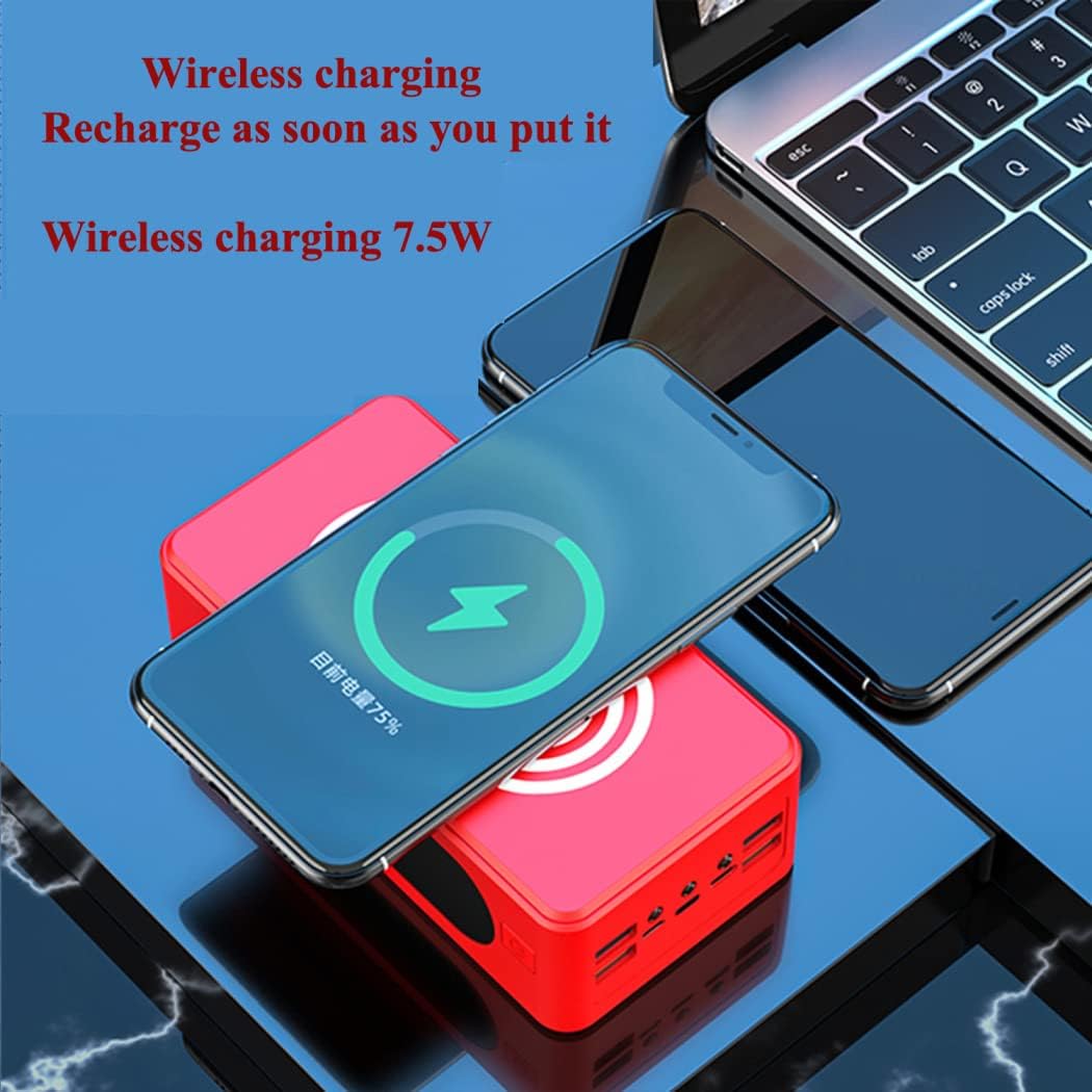 Chargeur Sans Fil Haute Capacité: Batterie Lithium-Polymère Haute Capacité Integrée de 50000 MAH, Vous PermEttant de Charger Votre Appareil plusieurs FOIS Sous Une Alimentation stable. Il peut ajuster automatiement la sorttie pour quatrenir le Courant le Plus approprié,