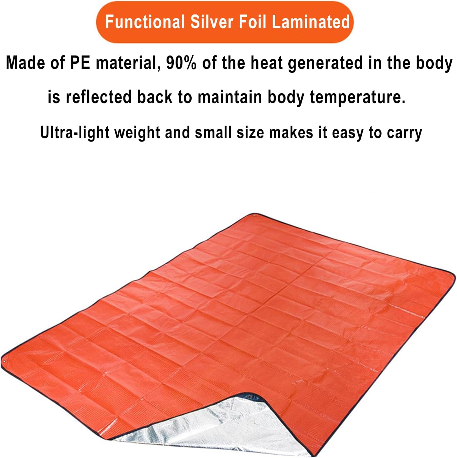 Facile à Transporter: Conçu pour être léger et souples, cpette couverture urgente s’intamen sans effort dans les sacs à dos ou les poches. SA TAILLE COMPACTE GARANTIT UN TRANSPROPRES ET UN UNE FILILES, PARFAITS POUR LA RANDONNÉ, LE CAMPING OU les kits de survie
