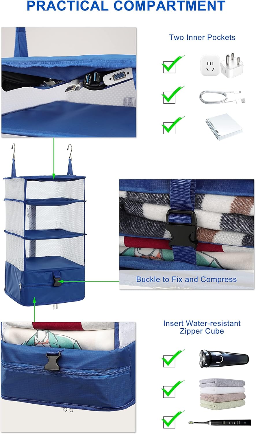 Organisez-Vous: L’Organiseur portable à suspendre elezay Vous Permet de Ranger et de debballler sans effort, le rendu voit de voyages Moins tumultuux et plus agréable. Diffonuable en 3 formes, en forme de suspension, en forme de valise et en forme de compact de rangement. Vous Pouvez Ranger vos vêts dans le sac