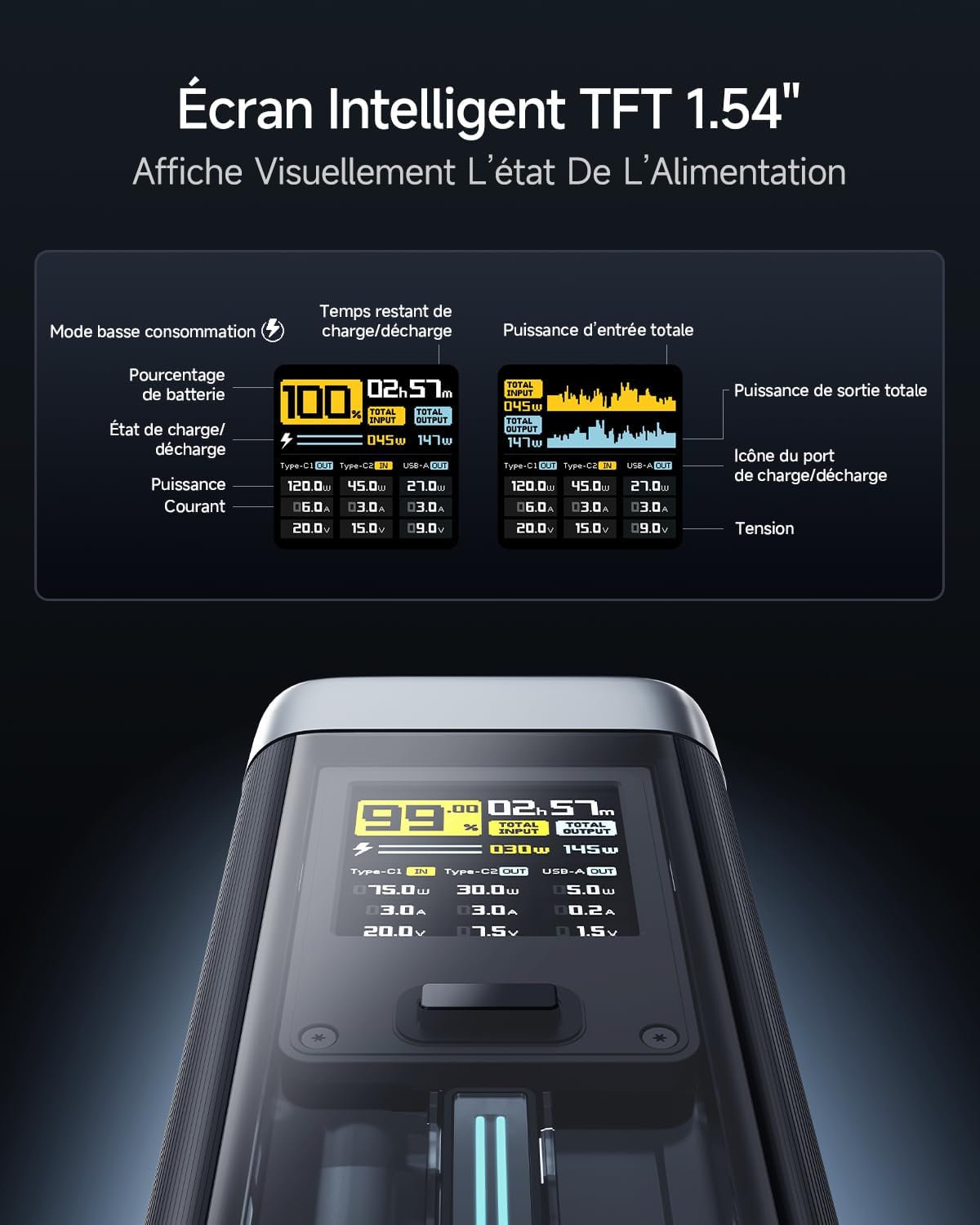 【Écran tft Intelligent】 Doté d’Un écran tft Intutif, il affiche en temps lel le niveau de batterie, La Puiseance, la tension et le Courant. Contrôlez Faciliment Votre Power Bank Grâce à Son Interface Graphique Claire.