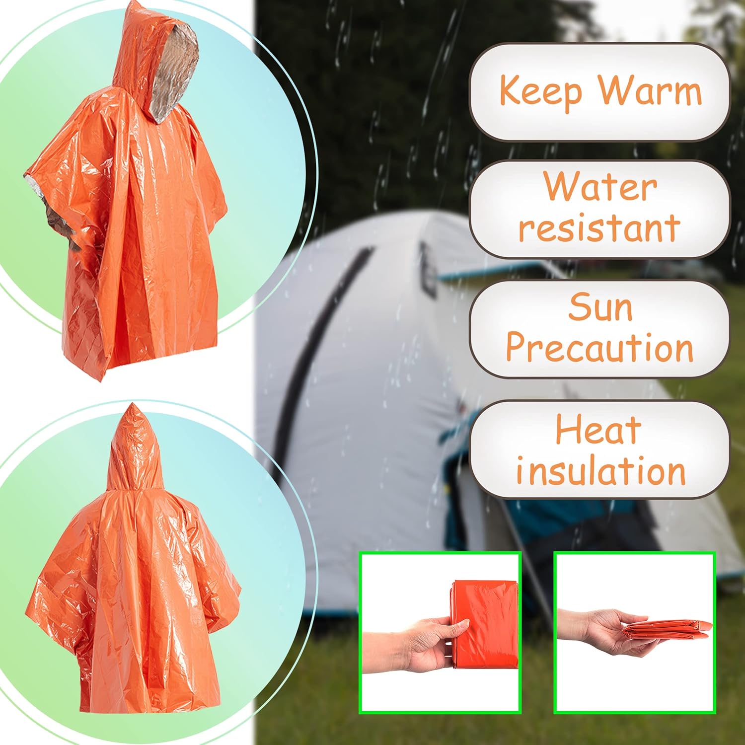 Éco-fusionné Ponchos de Pluie d’Urgence Avec Capuche et Sifflets de Survie – Fournitures de survid Thermiques en Plein Air Résistantes aux Intempéries Essentials