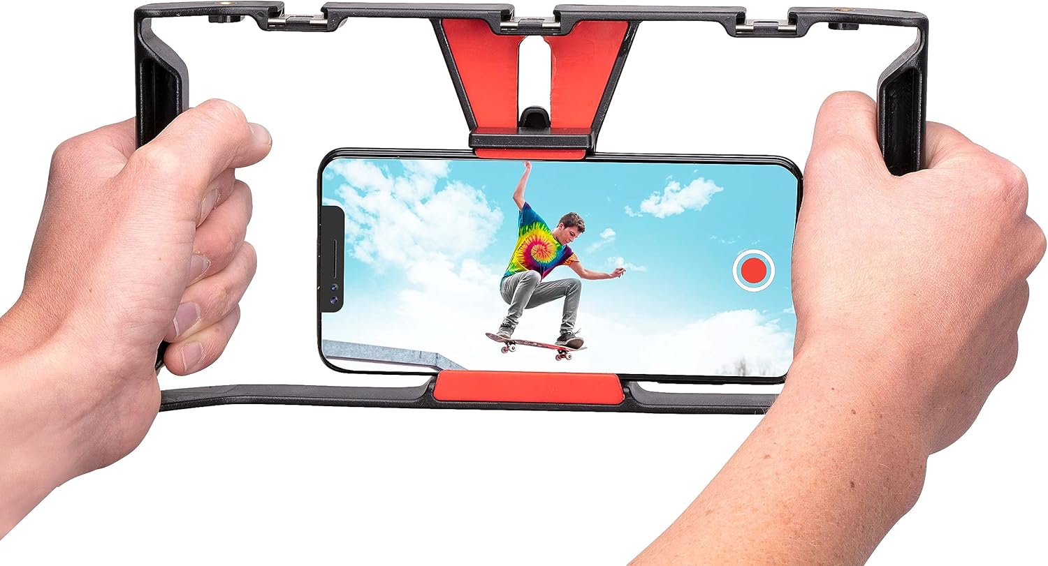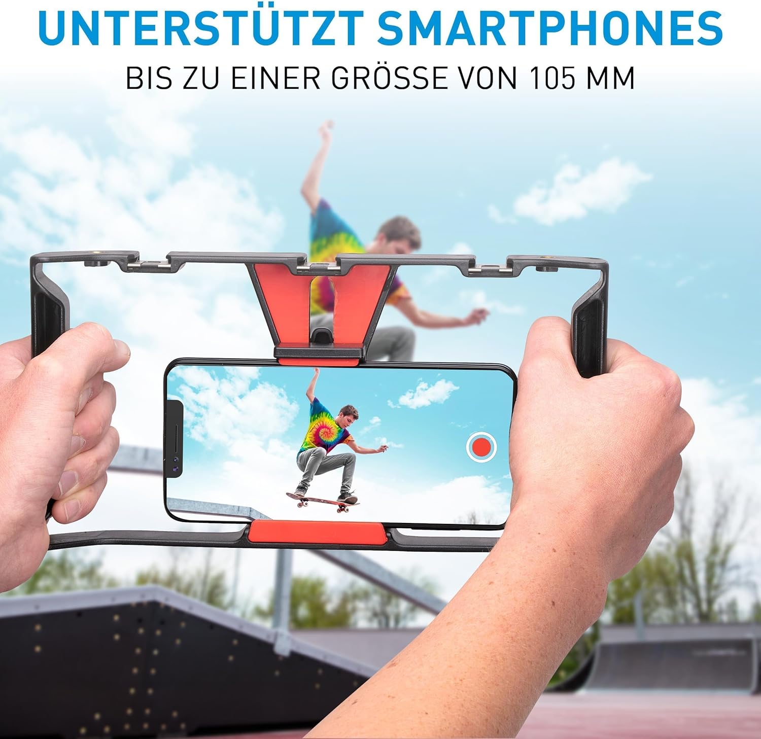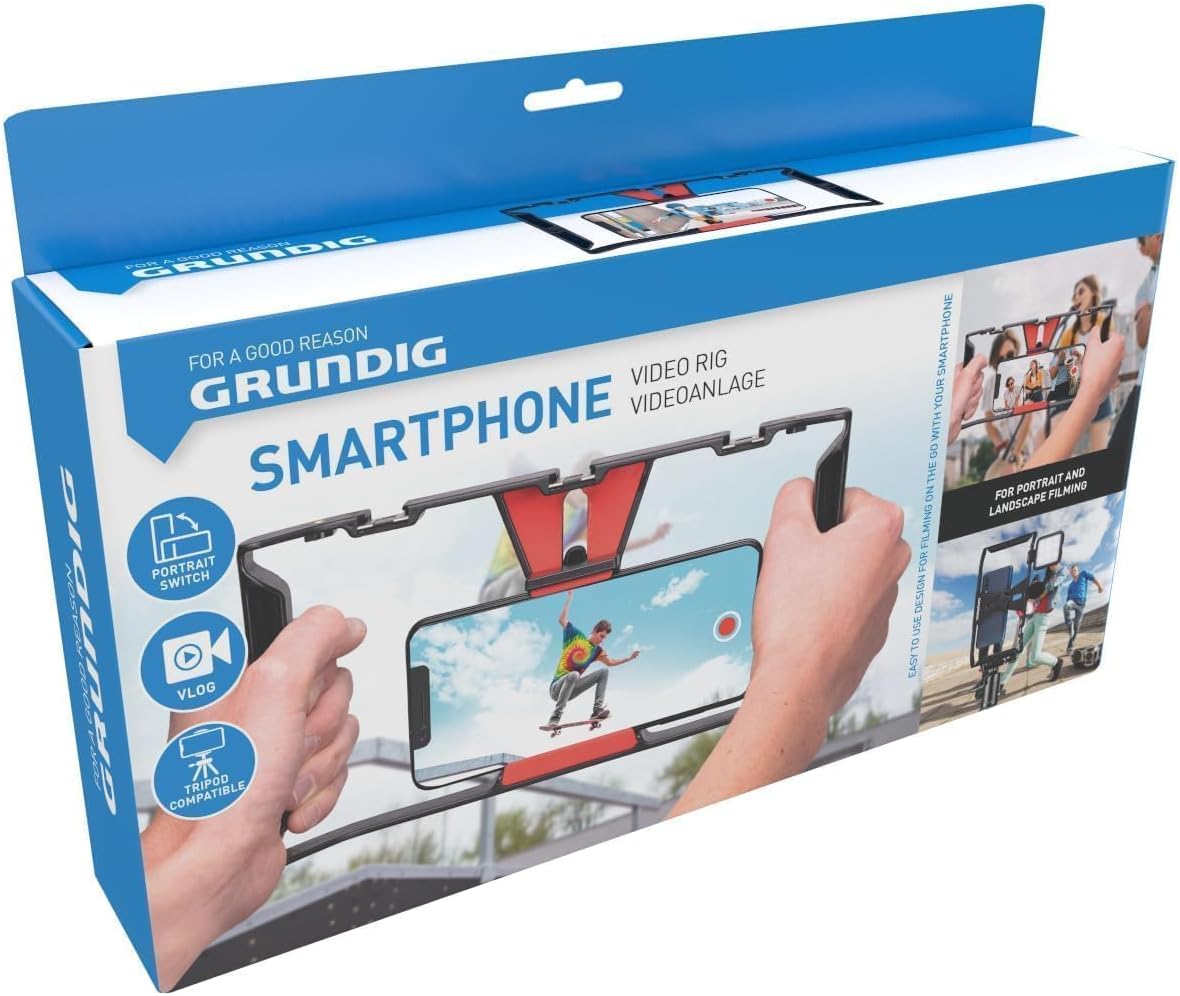 Grundig Support Vidéo pour smartphone – Kit de deMarrage Vlog – Connecteurs pour les accessoires Vidéo – Prix Trépied – Stabilisateur Vidéo – Noir / Rouge