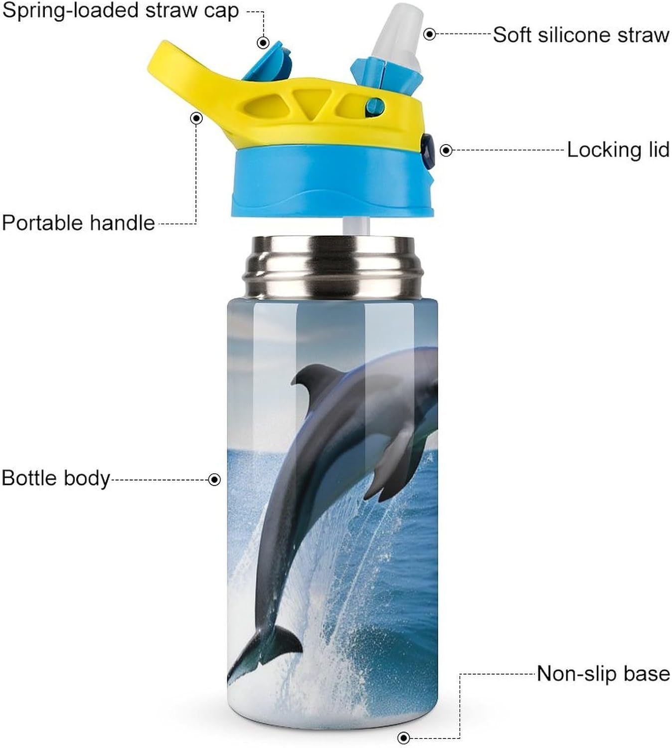 Polyvalent et facile à transporter: Notre-Bouteille d’Eau en Métal Imprimé sautant les dauphins s’adapte à la Plupart des Porte-gobelets et Poches de Sac. C’est le compagnon idéal pour les aventures en plein, aller à la salle de sport ou vos trajets quotidiens