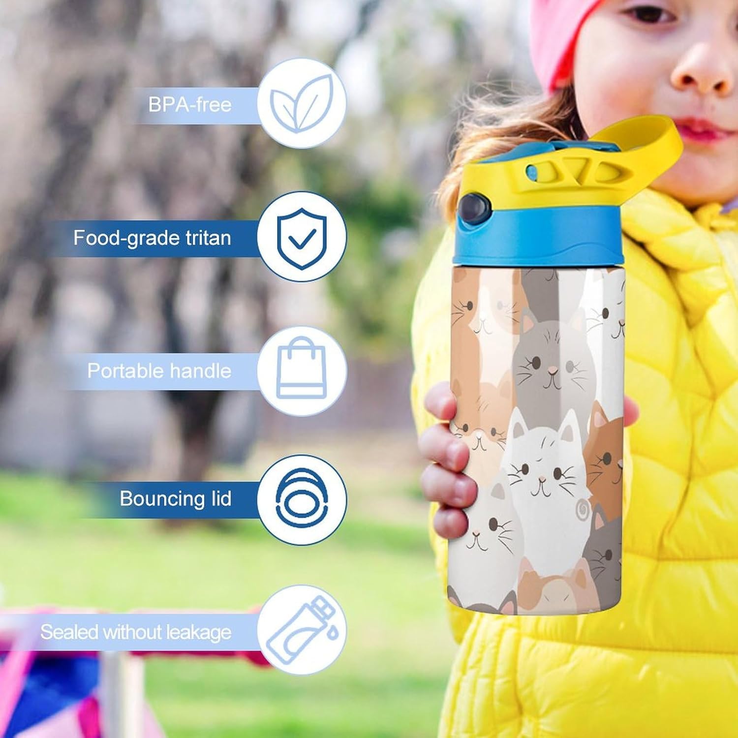 Utilisation d’Une Seule Main: Notre Couvercle à Rabat est conçu pour s’ouvrir d’Une Seule Main en AppUyant sur un Bouton, et dissose d’Une Paule en Silicone sur le Dessus pour siroter Faciling. Il est facile et pratique à l’utilisateur lorsque ve de l’er exercice à la salle de sport, conduisez ou cameme Faites du Vélo.