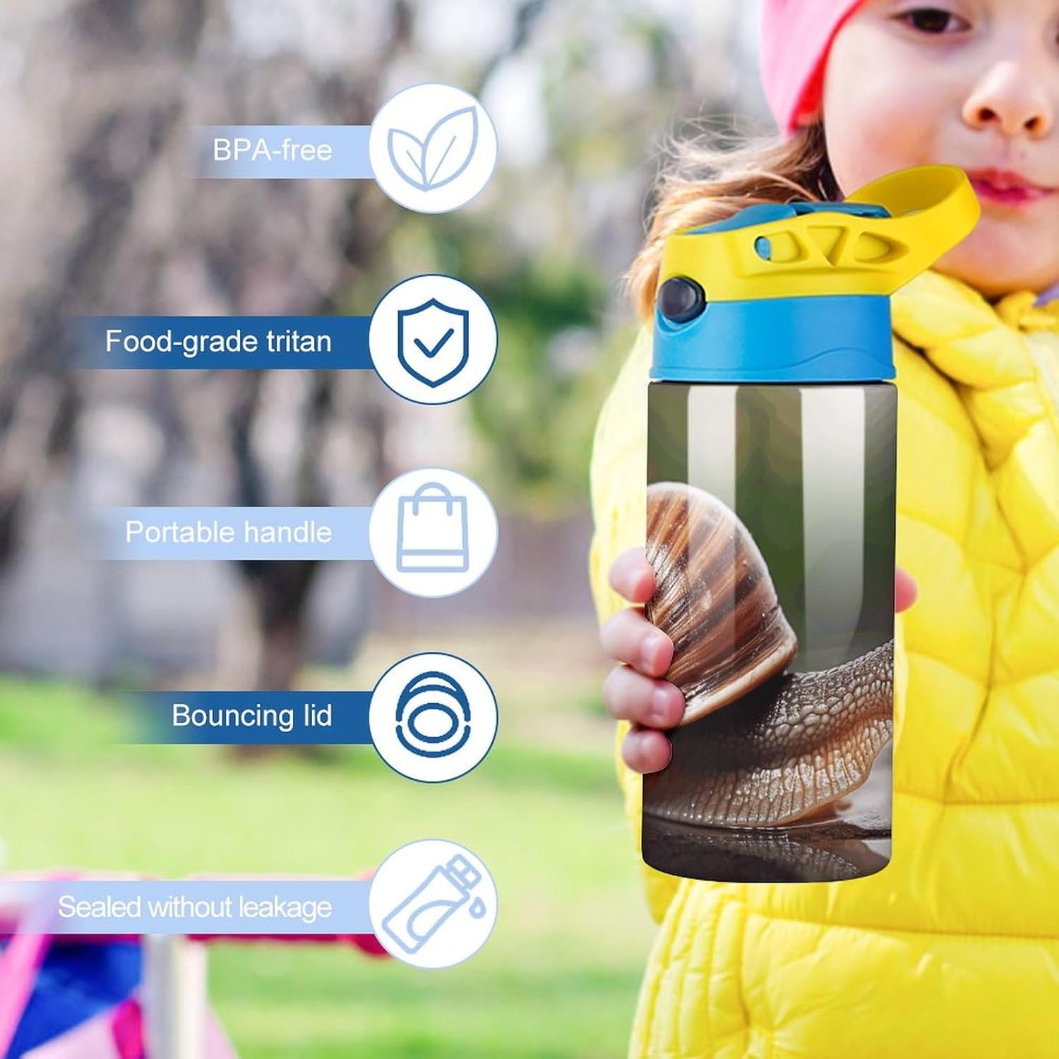 La Bouteille d’Eau Imprimé «une photo d’un escargot» est facile à transporter et peut Être Mise danans n’importe quel portte-gobelet ou sac à dos, ce qui en fait une compagnon Parfait pour voter. Que Vous Soyez dans la voix, lors d’Un Pique-nique ou TOT SIMPLATION pour Vous Détendre à la Maison, Cette Bouteille d’Eau Peut durable Répondre à Vos Besoins.