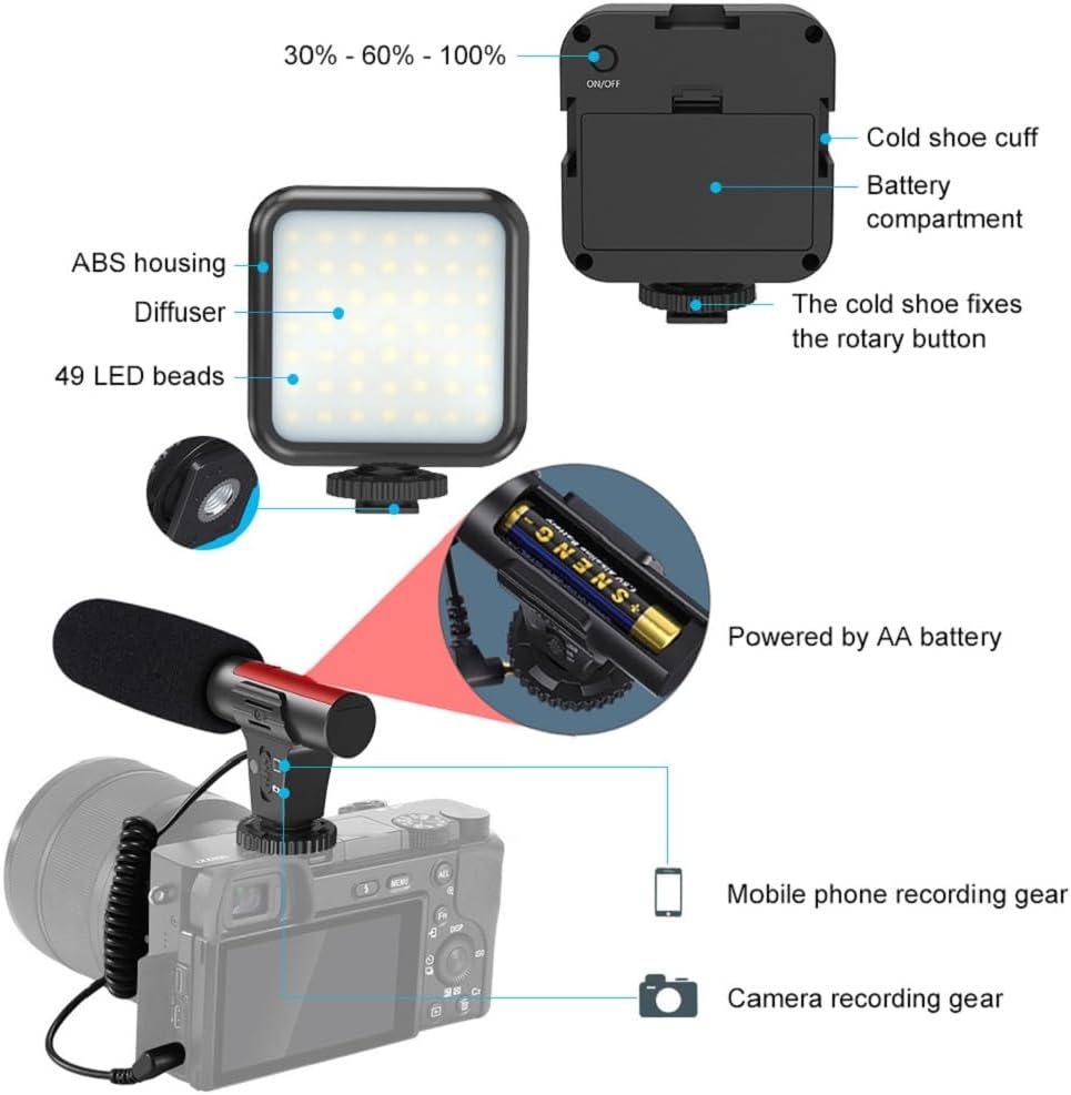 【Audio et video de haute qualité】: L’Appareil est équipé d’Un microphone à canon à condensateur de haute qualité avec sonction de réduction du bruit, Qui peut capturer un son clair et précis. En-Même Temps, La Lumière LED DISSOSE DE 36 PERLES DE LAMPE SURDIMENDENSEES, QUI PRENNENT EN CHARGE TROIS NIVEAUX DE LUMINOSÉ RÉGLALLES, VOUR OFFANT DE MEILLEUR EFFETS D’ENRÉSIGRATION VIDÉO.