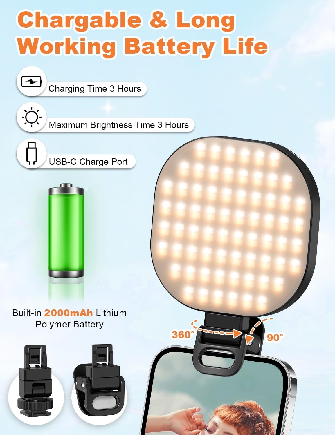 Lumière LED rechargeable 4 W 300 LM: La Lumière LED Gahenwo pour selfie Offre un Lumière Douce et Puissante Avec Une Source de 142 LED et un diffuseur. Vous Pouvez Faciliment Régler la Luminosé et la Couleur de la Lumière Avec 3 Modes de température de Couleur et 10 Niveaux de Luminosé pour chaques Mode, De Sate que Vous Pouvez Filmer ou Prendre des photos la Nuit ou dans l’environnement Sombre. Le Design AMOVIBLE PERMET D’ÉCONOMANTER DE L’ESPACE LORSQUE LA LUMIER N’EST PAS NÉCESSAIRE.
