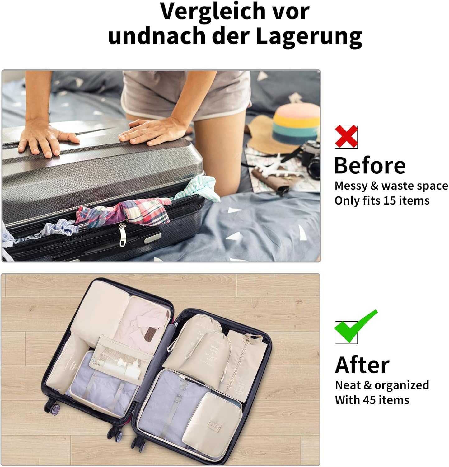 Die 10 Kofferorganizer in verschiedenen Größen sind robust, platzsparend und helfen, alles ordentlich zu verstauen. Dank der transparenten Einsätze behält man immer den Überblick . Empfehlenswert!