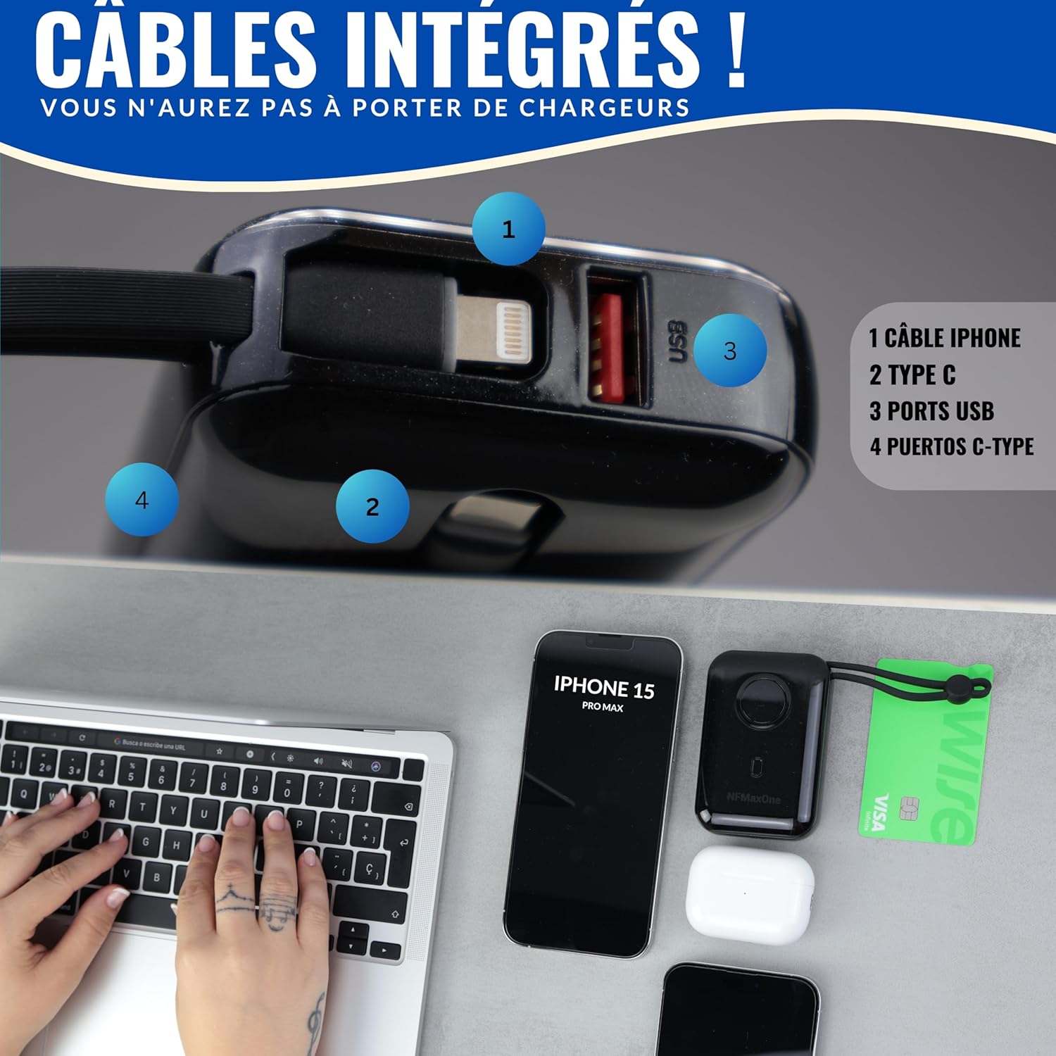 AVEC CETT BATTERIE PORTABLE, OUBLIEZ D’EMPORTER VOS Chargeurs Partout.