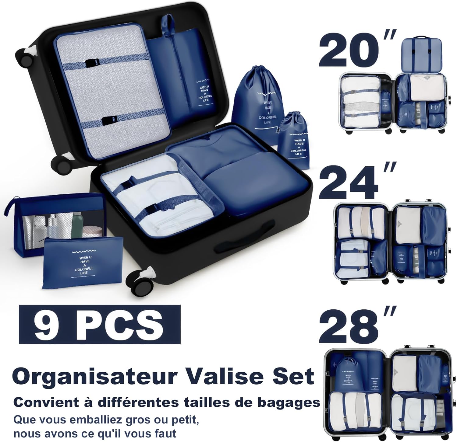 MATÉRIAU: TISSU OXFORDENSEMBLE: Set de 9 cubes de télévision pour ValisesCouleur: Marine Veuillez Noter: