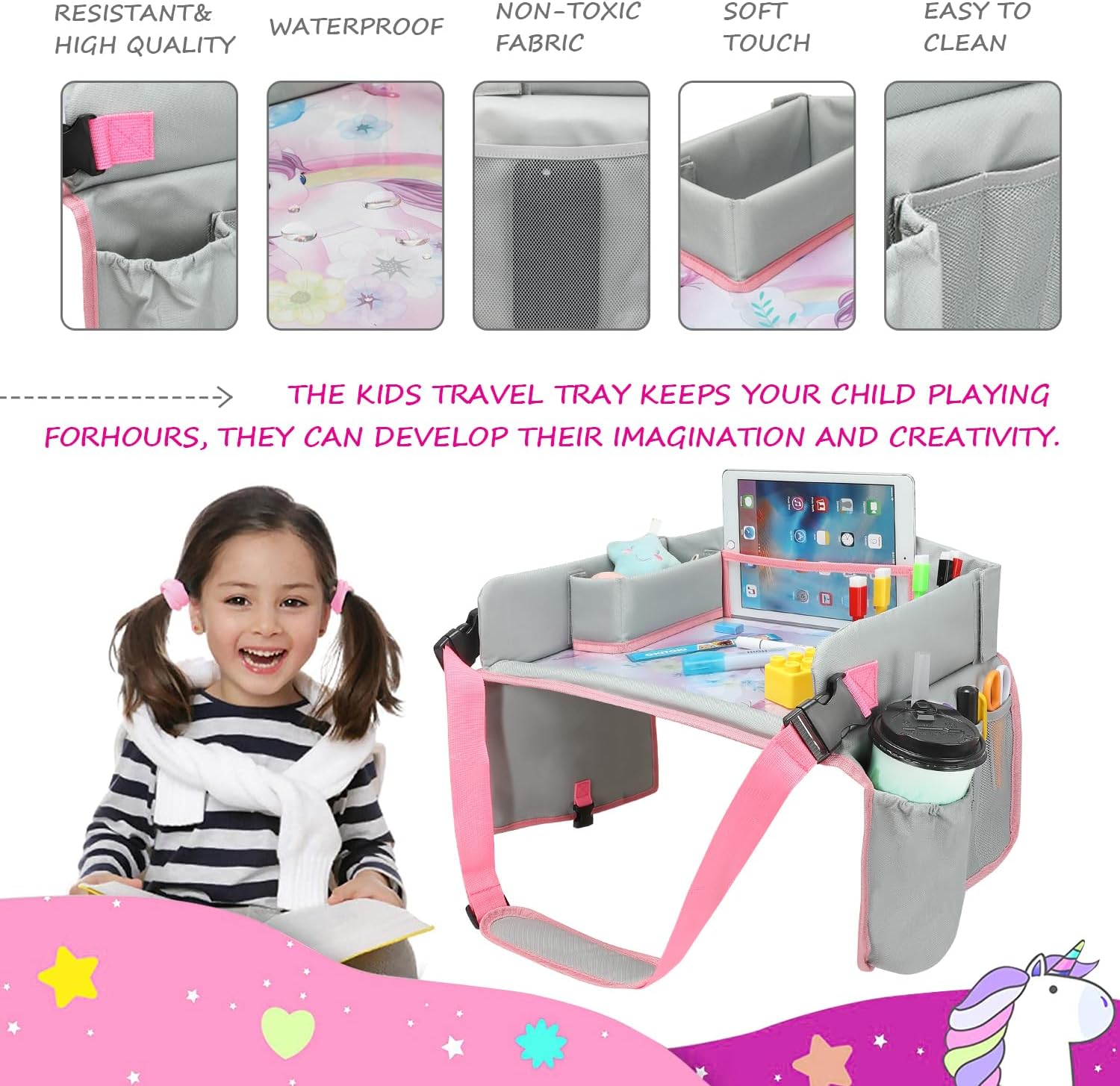 EXERIENCE DE VOYAGE SANS PROBLÈME. Plateau de Voyage pour les enfants en voix. Gardez tout en place avec le plateau pliable de Voiture. Polyvalent et indispensable pour les voyages et les promenades. Amusez-Vous AVEC le Plateau de Voiture vers les enfants