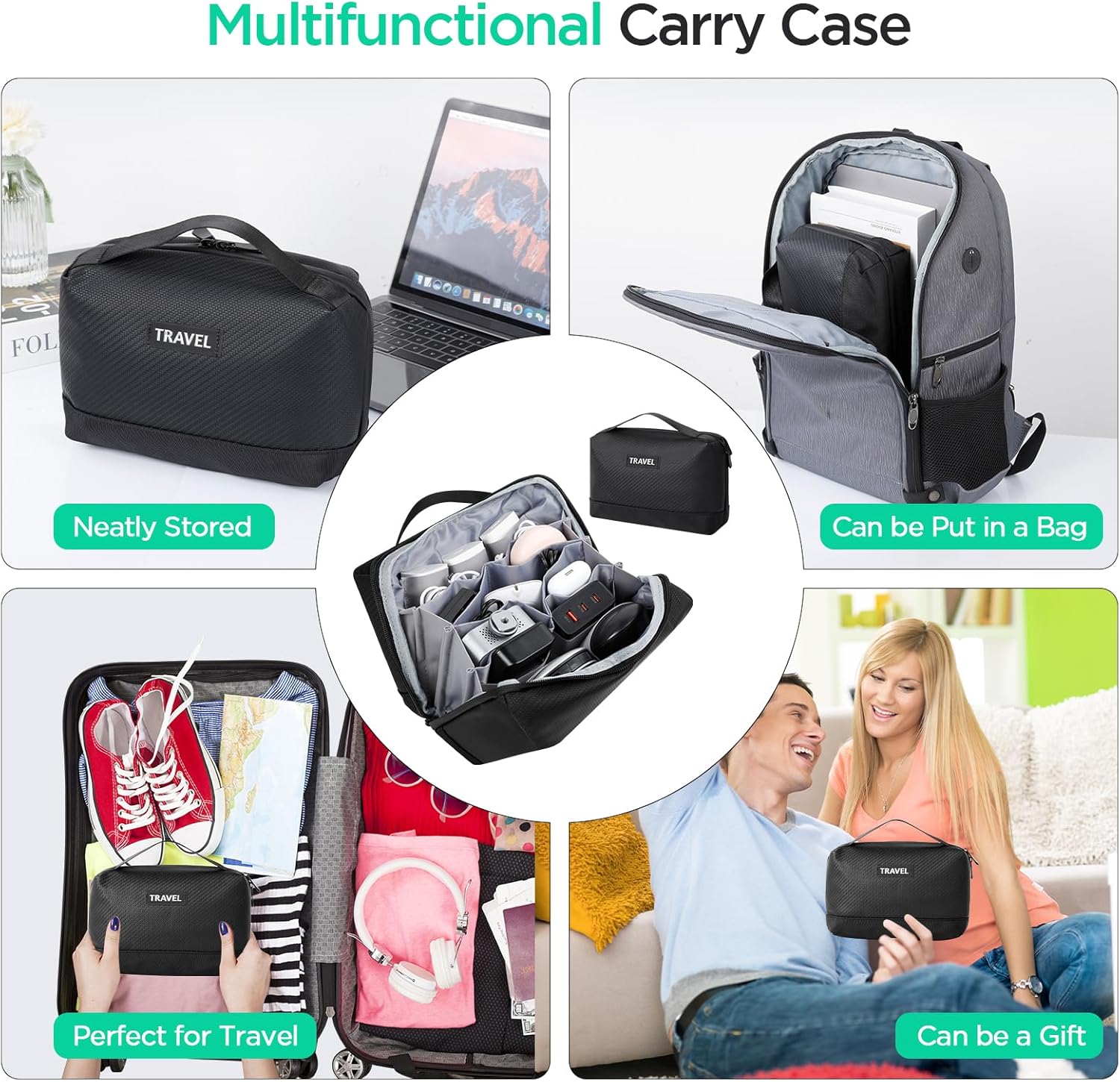 Quand on part en vacances j’ai un sac dédié à l’électronique, jusqu’à maintenant je faisais avec les moyens du bord et l’organisation des différentes câbles était super pénibles.Ce sac à une taille parfaite pour être facile à emmener et possède de très nombreux rangements.La finition est très bonne, les matériaux sont solides et les fermetures éclairs de bonne qualité.Je vais pouvoir y ranger mon gros chargeur à 8 ports USB ainsi que son câble d’alimentation, des câbles, chargeurs portables etc…Les poches sont de belle taille et on y retrouve des élastiques afin de sécuriser les éléments que l’on souhaite y ranger.Je suis donc très satisfait de ce sac qui me permet d’organiser facilement tout mon matos informatique et électronique quand nous partons en vacances.