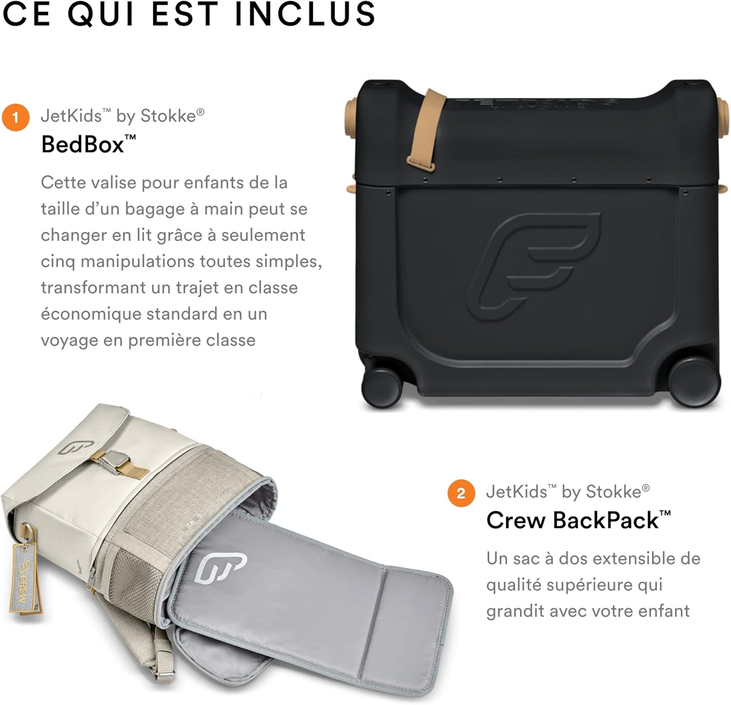 Kit de Voyage – Le Coffret Voyage Jetkids est idéal pour Voyager Avec des Enfants: le sac à dos Extensible Crew Sackepack et L’Onnovete Bedbox, la Seuse Valise-Lit à Roulettes pour lesfants qui Permret, il