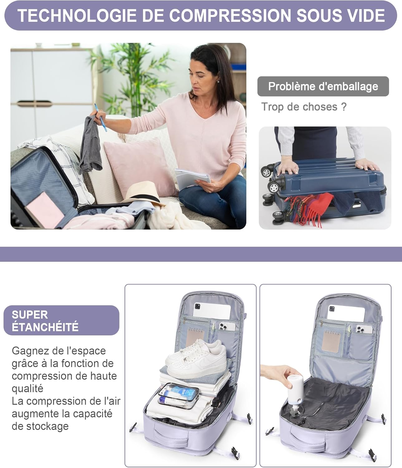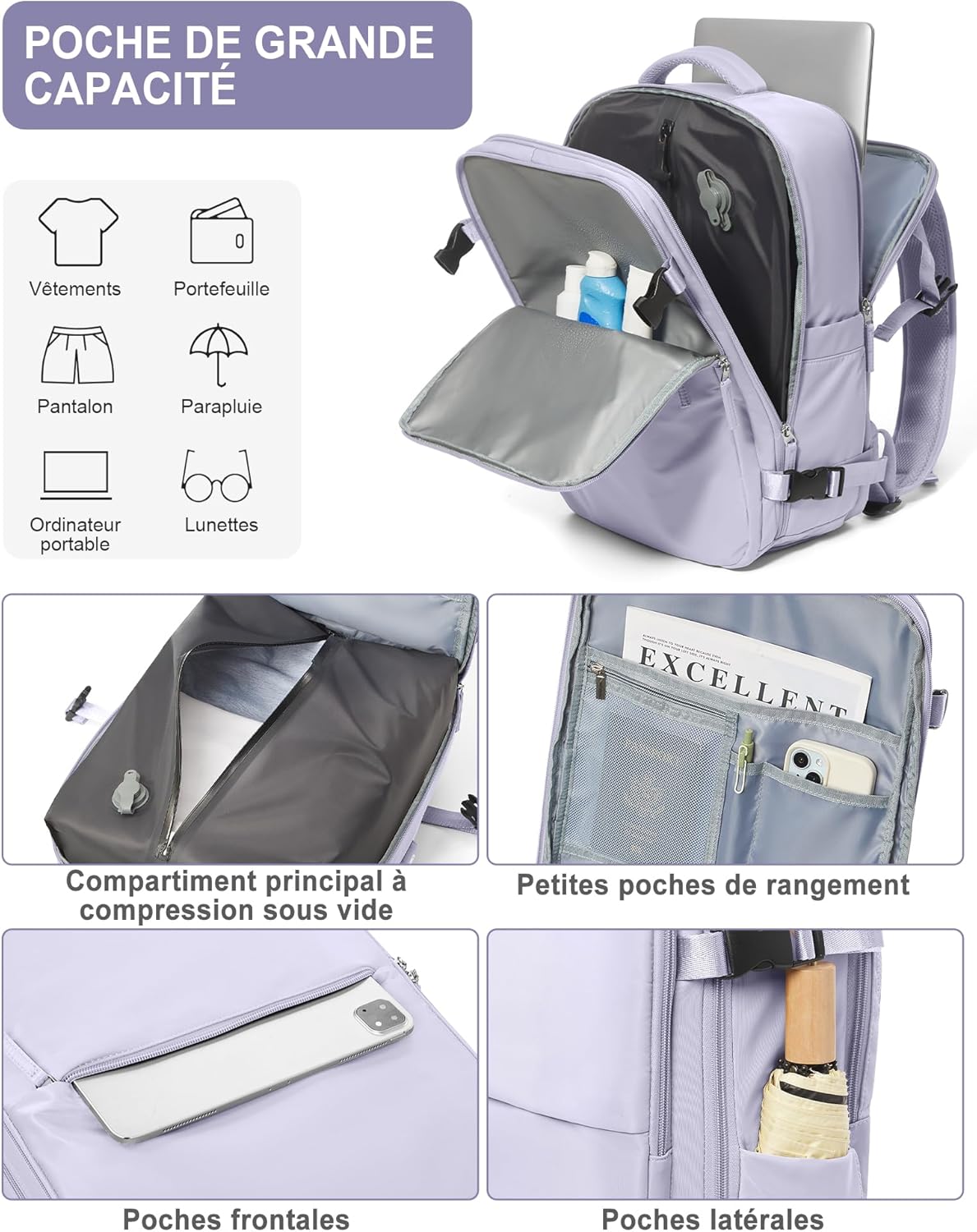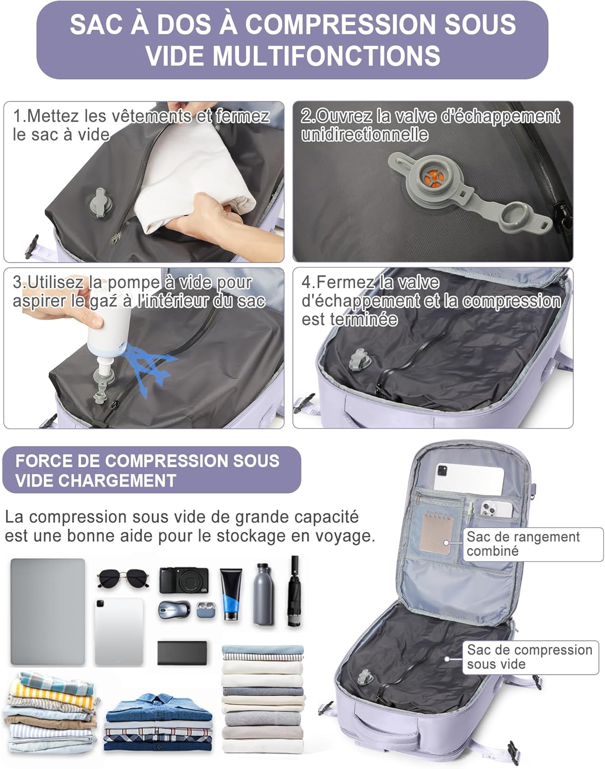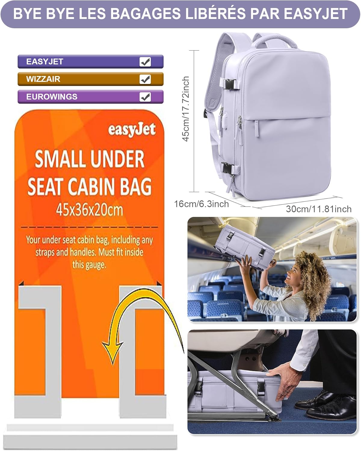 SAC à dos pour EasyJet: Les Dimensions du Sac à Dos à Vide de Cabine Suradar Sont de 45 x 30 x 16 cm. Il répond aux exigences de easyjet en mattière de tille des bagages de cabine et peut Être placé dans le compartiment à bagages superieur ou suous le siège de l’avion. Dite Adieu Aux Frais de Bagages Supplémentaires. Ces sacs à dos utilisent la technologie de compression suous vide pour contenir plus de bagages que les sacs à dos easyjet Ordinaires. Ils Sont donc Parfaits pour les passager de easyjet et d’autres compagnies aériennes