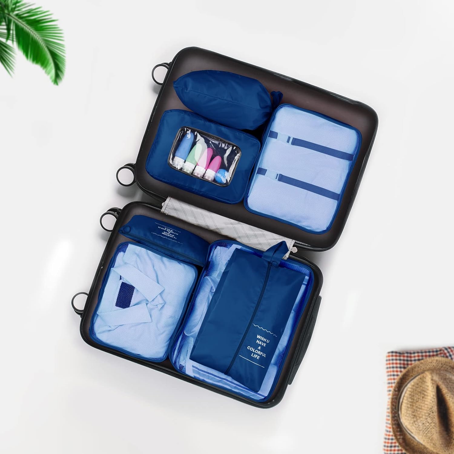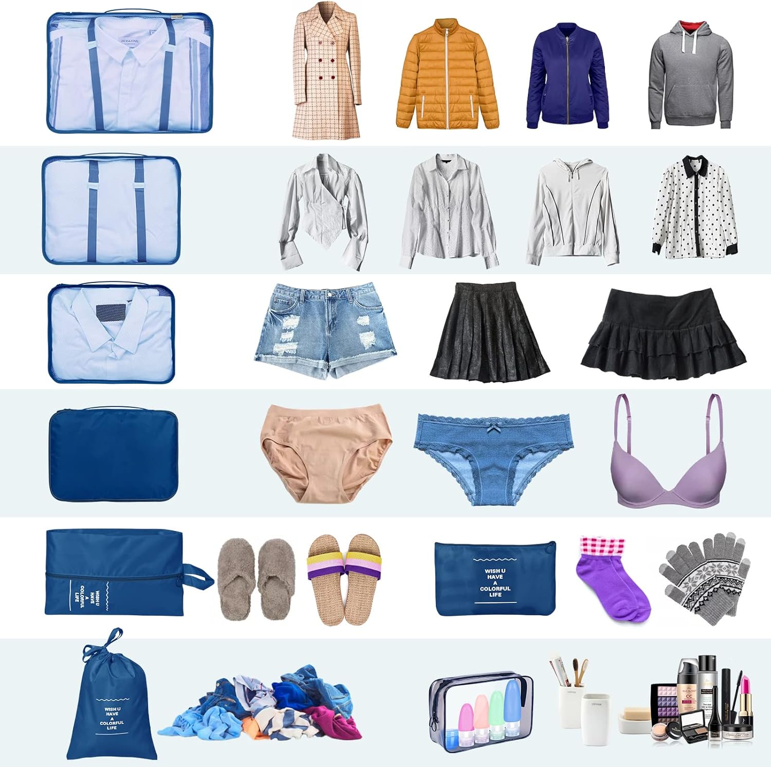 👔 8 PCS Organisateur de voyage: CET Ensemble Sacs Rangement De Valise Voyage Comprend 3 Cubes d’Emballage de Voyage AVEC DESSUS EN MAILLE transparente pour les Vêts, 1 Cube de Rangement Privé. Transparent et 1 sac Plat vers les Petits objets comme les chaussettes et les clés.
