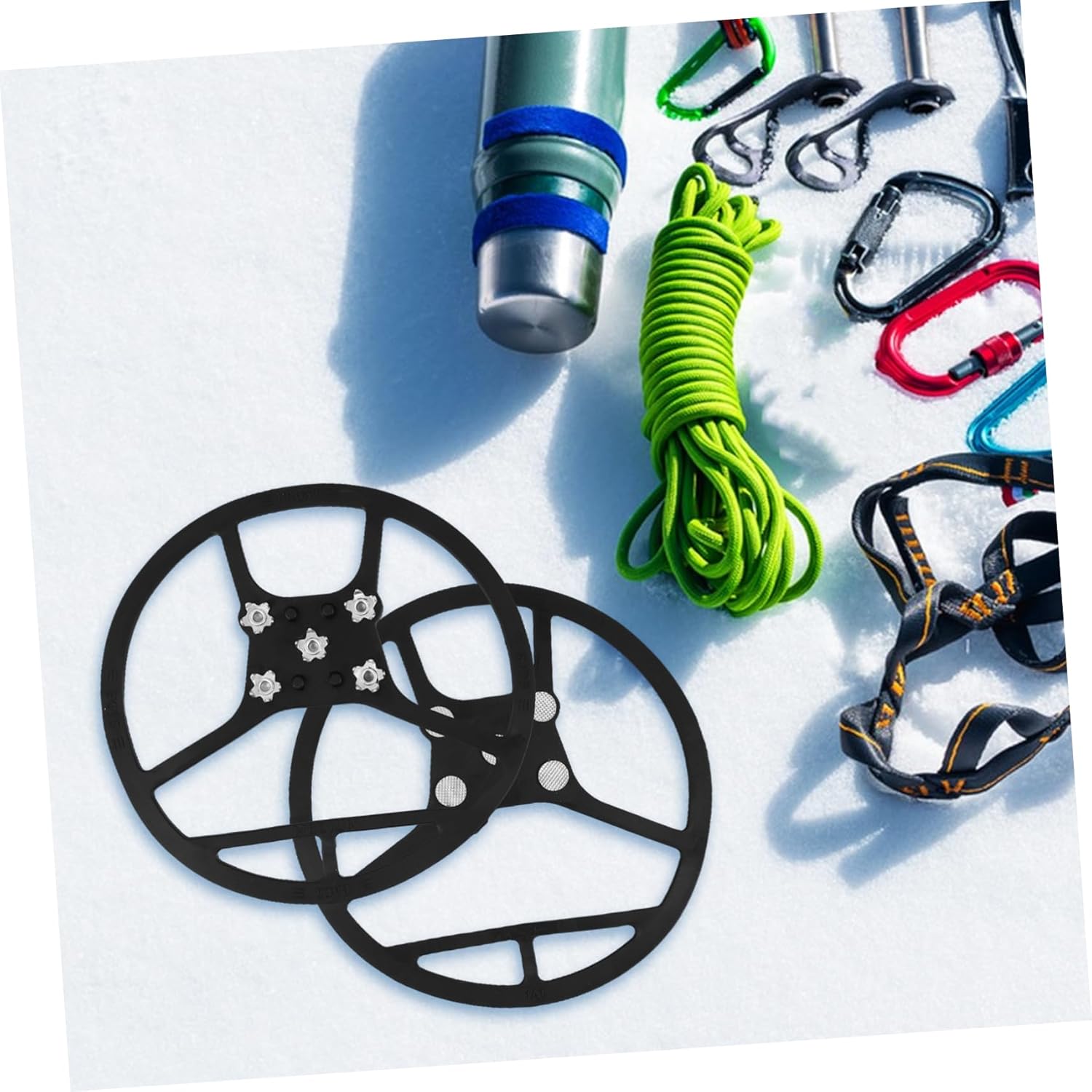 Les crampons à glace versent des bouts chaussures assurez vos terrains glacés et enneigés avec cees crampons à glace antidérapants. Crampons à neige idéal pour les actités de plein Air comme Randonnée et l’Escalade, ces crampons sont aciles à mettre et à enlever, ce qui en fait un ajout pratique à votre Crampons à Glace Restez en sécuré et en confiance dans les conditions difficile. Crampons à neige pour les chaussures Dotés de Cinq Crampons Robustes, ILS OFFRENT UNE Excellente Traction et stabilité