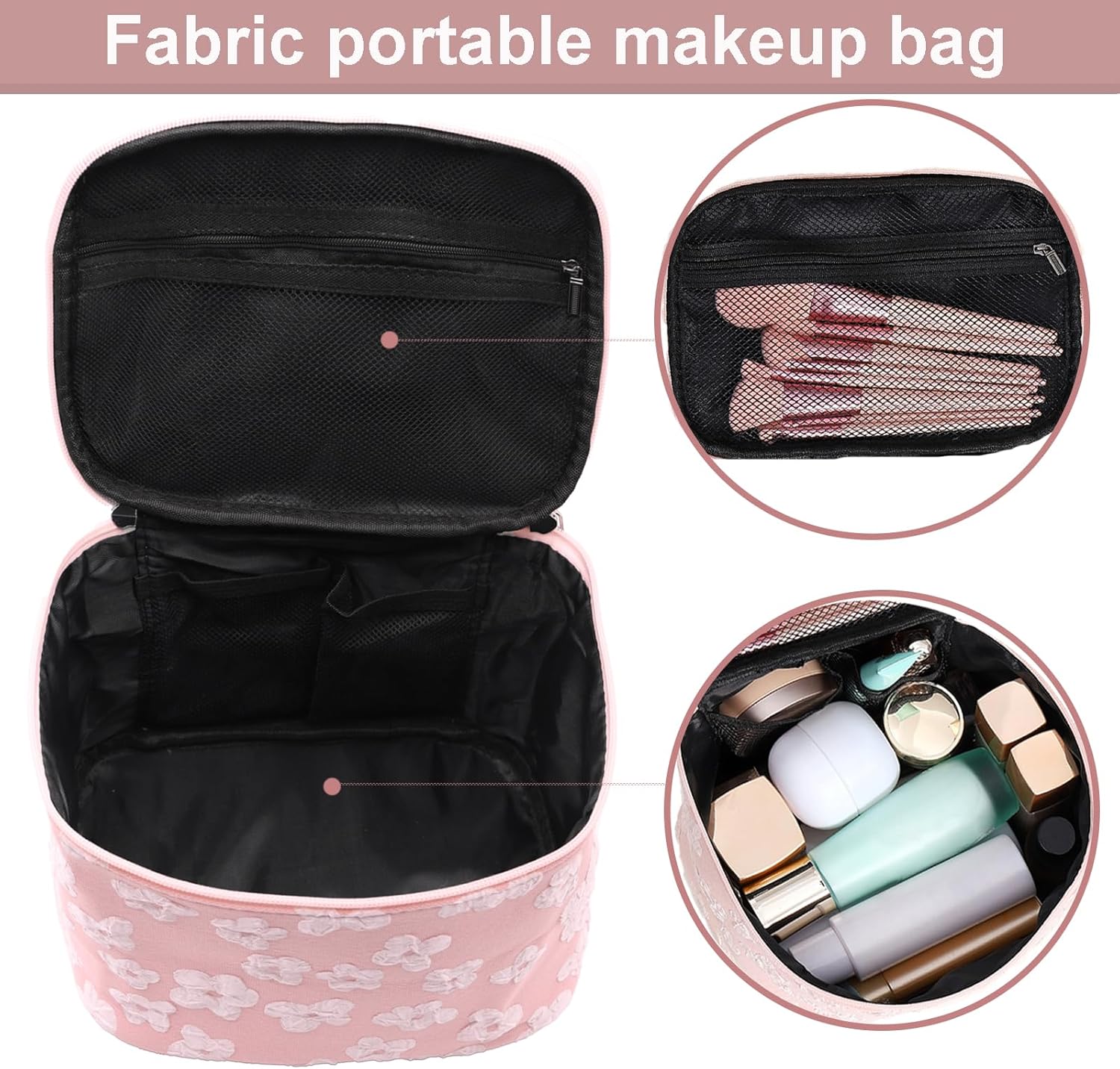 élégant et haute capacité: parfait pour contenir des cosmétiques, des outils de maquillage, des articles de toilette, tels que des produits de soins de la peau, de la crème solaire, de la poudre, du rouge à lèvres, des pinceaux de maquillage, un fond de teint liquide, un shampooing, une lotion, Etc.