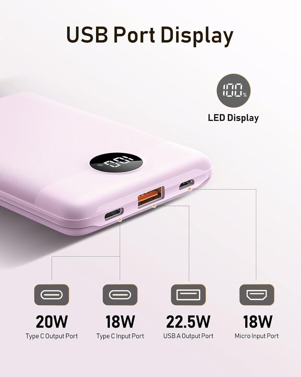 1 Port max 22,5W USB 2 Mini Taille 10000mAh 3 Compatibilité Universelle