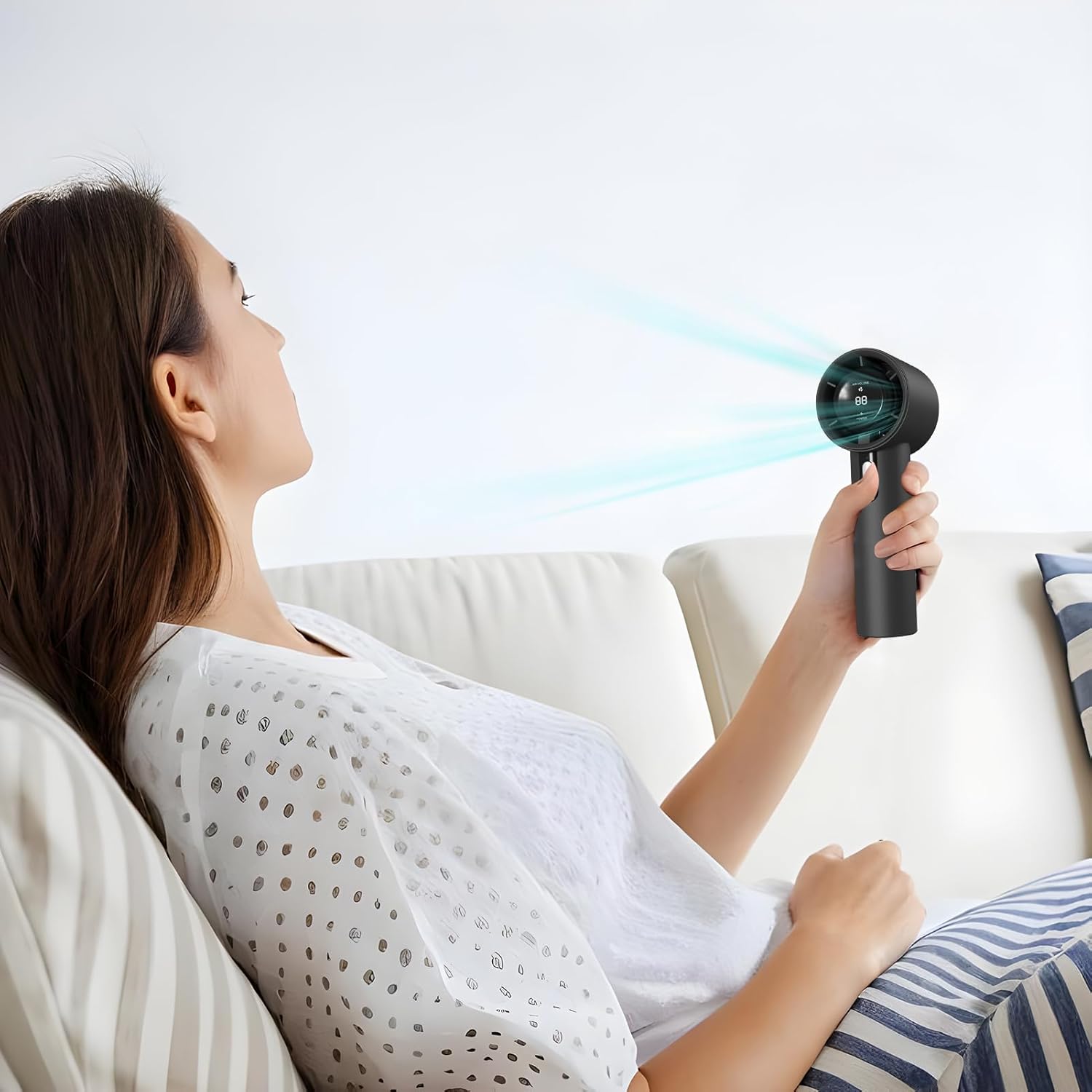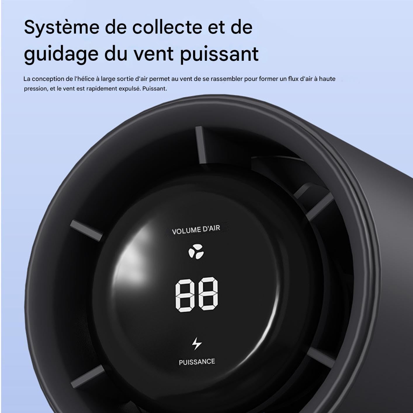 RESTEZ AU FRAIS AVEC STYLE GRâce à ce Ventilateur portable de poche, UN REFROIDSEUR PERSONNEL ÉLÉGANT ADAPTÉ AUX VOYAGES, AU CAMPING ET À UNON UTILISATION QUIDIENNE. La Soufflerie Haute vitresse Assure un flux d’Air PuisiSant AVEC 100 VITESSES RÉGLALLES, TOT EN FONCTIONNANT SILENCIEUSEMENT. L’écran nummérique ajoute du confort pour des ajustements rapides.